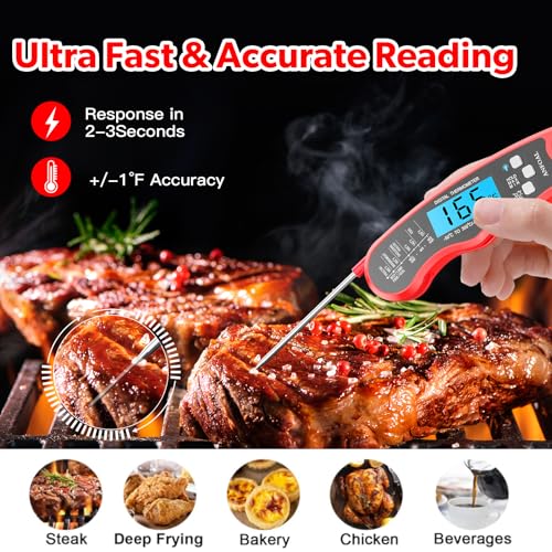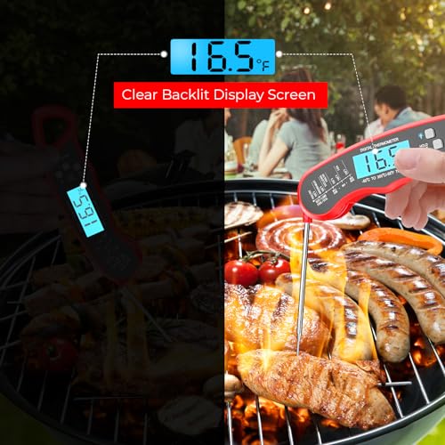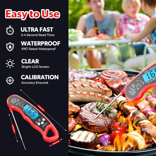Digital Meat Thermometer with Probe Fast Instant Read Food Thermometer for Grill and Cooking Best Waterproof Ultra Fast Thermometer with Backlight & Calibration for Kitchen
