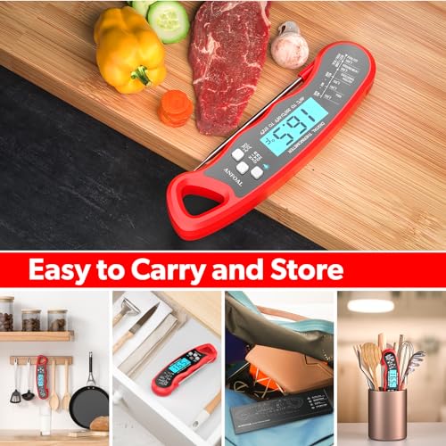 👍Easy to Read and Use:Instant thermometer with Clear backlit display screen, making it easy to read the temperature even in dim environments. Simply insert kitchen thermometer into your food and receive the temp in seconds; Powers off after 10 minutes of no use to conserve battery life. Perfect for indoor outdoor cooking, grilling, BBQ and so on.