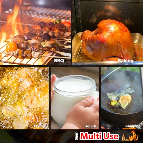 🌷Multi Use Kitchen Thermometer:The Digital Meat Thermometer features a foldable probe design, small and lightweight, easy to carry and store, providing support for your cooking anytime and anywhere. Suitable for various scenarios such as grilling, baking, cooking, frying, liquids, and candies, it is an essential tool in the kitchen.