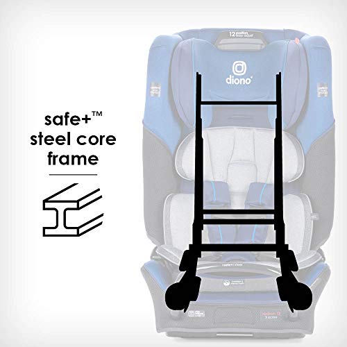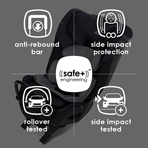SAFE plus ENGINEERING – Tested Radian all-in-one convertible car seat; featuring Safe+ steel rear-facing anti-rebound bar, steel reinforced frame, advanced side impact protection and Diono SuperLATCH attachment