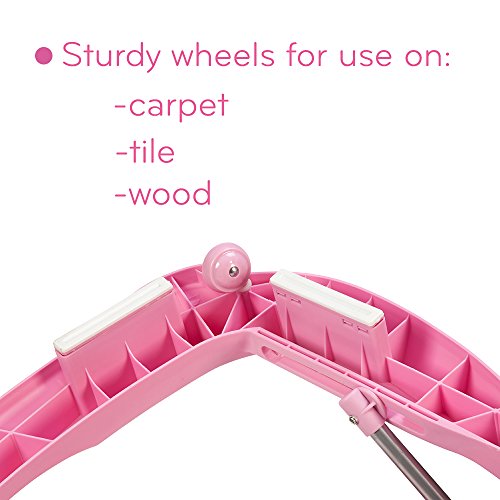 The sturdy wheels work equally well on floors or carpets, with grip strips that help reduce movement on uneven surfaces.