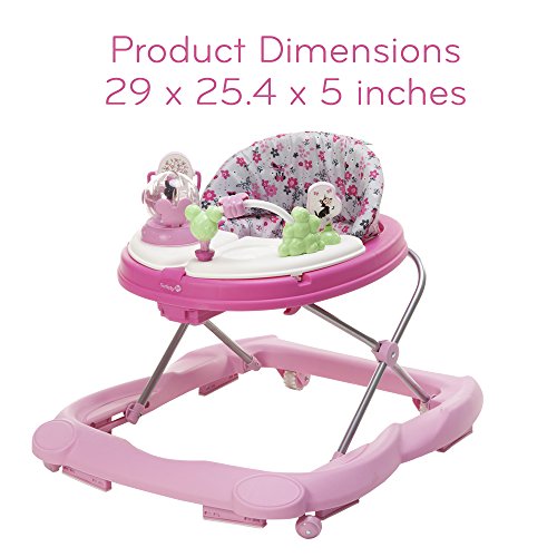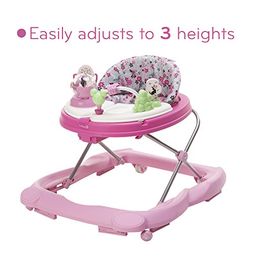 Make your child’s first steps fun and easy with the Disney Baby Garden Delight Minnie Mouse Music and Lights Baby Walker with Activity Tray. This adjustable developmental baby walker featuring Disney’s Garden Delight and Minnie Mouse pattern has a wide, extra-stable base and three different height settings to provide the best fit for your child. With four fun Minnie Mouse-themed toys, this baby walker includes a music module that plays 12 different songs. The baby walker’s sturdy wheels work equally well on floors or carpets, with grip strips that help reduce movement on uneven surfaces. Cleanups are quick and easy with this baby walker’s machine-washable padded seat and easy-wipe snack tray. Fold the baby walker quickly and easily for storage or travel, perfect for visits at home or away with friends and family. This baby walker comes with a one-year limited warranty. Requires two AA batteries (not included). Shopping for baby doesn’t have to be an ordinary task it can be a joyful discovery that starts with Disney Baby and ends in your nursery, living room, and every place you interact with your little one. Disney Baby takes pride in helping families connect by offering apparel, gear, toys, play mats, bedding and other items that inspire every moment of the day.