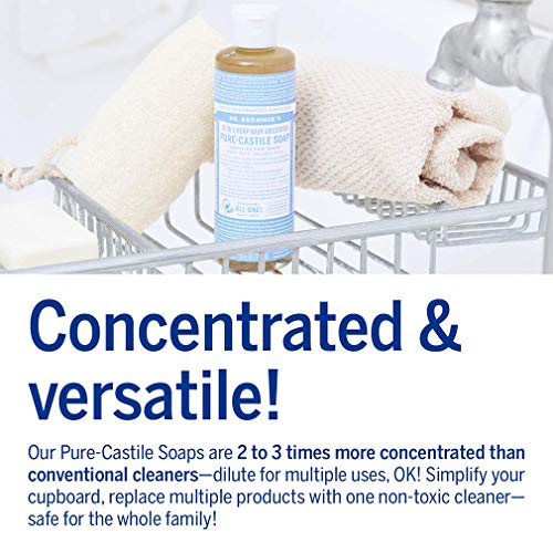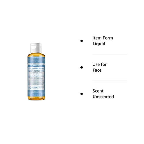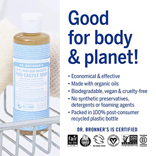 Dr. Bronner’s – Pure-Castile Liquid Soap (Baby Unscented, 4 Ounce) – Made with Organic Oils, 18-in-1 Uses: Face, Hair, Laundry, Dishes, For Sensitive Skin, Babies, No Added Fragrance, Vegan, Non-GMO