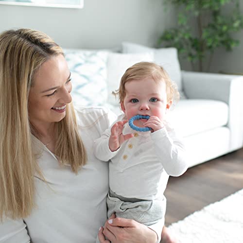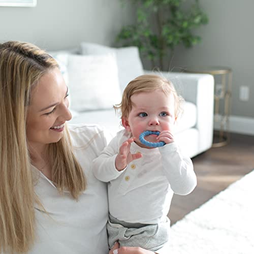 Dr. Brown’s Flexees Beaded Baby Teether Rings, Soft 100% Silicone, 3 Pack, Blue, Light Blue, Black, BPA Free, 3m+