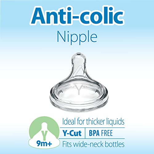 Dr. Brown’s Natural Flow Y-Cut Wide-Neck Baby Bottle Nipple, Ideal for Thicker Liquids, 100% Silicone, 2 Pack, 9m+