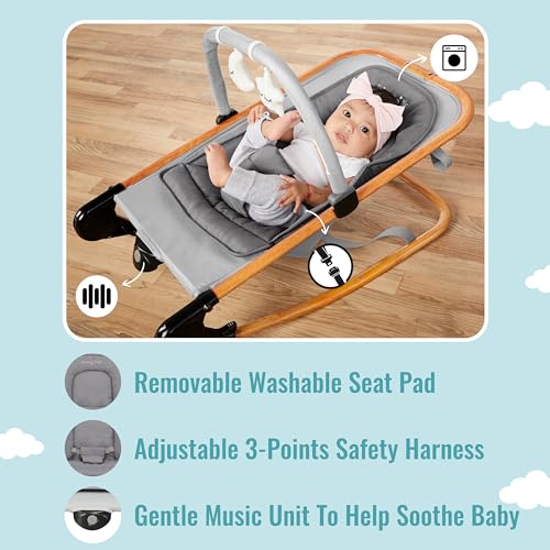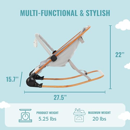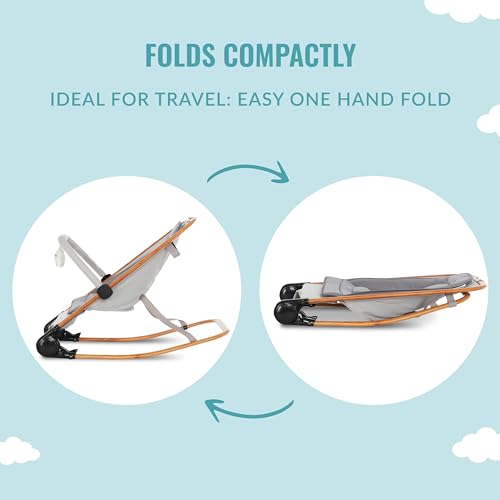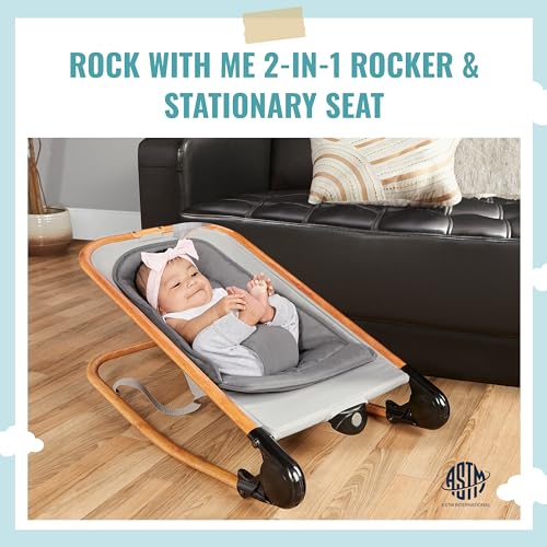 Dream on Me Rock with me 2-in-1 Rocker and Stationary Seat | Compact Portable Infant Rocker with Removable Toys Bar & Hanging Toys in Grey