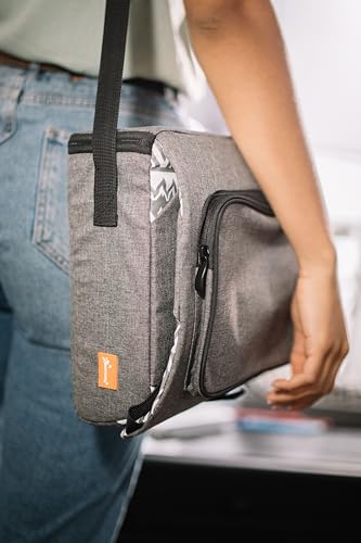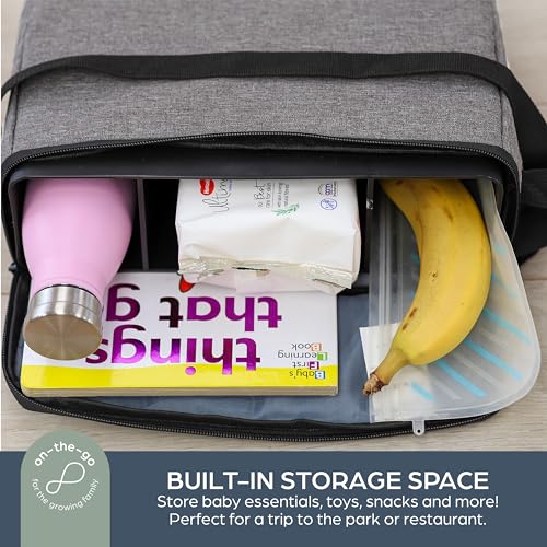 Dreambaby Grab ‘N Go Travel Booster Seat with Built-in Storage Space, Portable Highchair Booster Seat for Tables, High-Back Seat and Foldable for Baby Travel, Secured with a 3-Point Harness, Grey