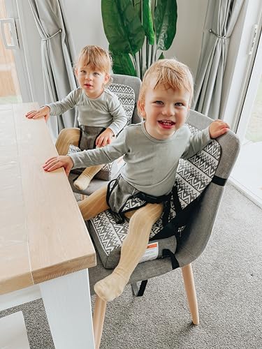 𝐒𝐚𝐟𝐞𝐭𝐲 𝐅𝐢𝐫𝐬𝐭:The 3 point harness booster seat design helps keep your child safer while sitting at the “big kid” table; With adjustable straps this seat can be used for babies as young as 6 months (who can sit upright) all the way to toddlers typically up to 5 years of age.