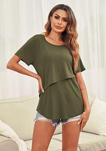 Ekouaer Women’s Maternity Nursing Tops Short Sleeve Double Layer Breastfeeding Tee Shirts S-XXL