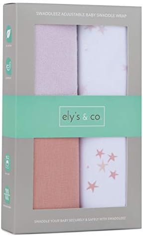 Ely’s & Co. Adjustable Swaddle Blanket Infant Baby Wrap 2 Pack (Mauve Pink Stars & Solid Dusty Rose 0-3 Months)
