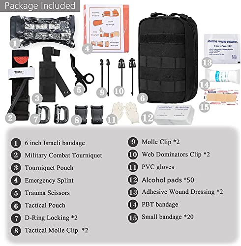 Emergency Survival Kits, Tactical Military Trauma First Aid Kit, Molle EMT IFAK Pouch Outdoor Gear Tourniquet Bandage Bleeding Control Kit for Camping Hiking Hunting Travel Car Adventures (Black)