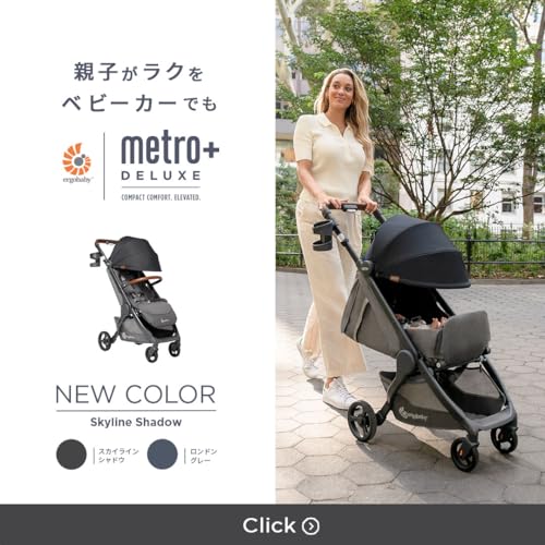 Ergobaby Metro+ Deluxe Compact Baby Stroller, Lightweight Umbrella Stroller Folds Down for Overhead Airplane Storage (Carries up to 50 lbs), Car Seat Compatible, Skyline Shadow