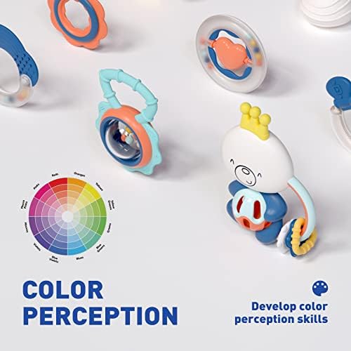 【Designed for Babies】The newborn baby is curious about the whole world,they will perceive the world through their own hands and eyes.We design sensory toys for babies in consultation with professional baby-sitting consultants and make the most suitable design according to their opinions.Baby rattle has been designed with many modifications. Teether has a lovely appearance, profect size and bright colors. It suitable for little hands to grasp and shake, your baby won’t get enough of them!