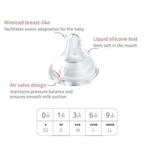 “Easy Transitioning” – The cross-cut adaptive teat for M and L sizes allows for a smooth transition from breast to bottle.