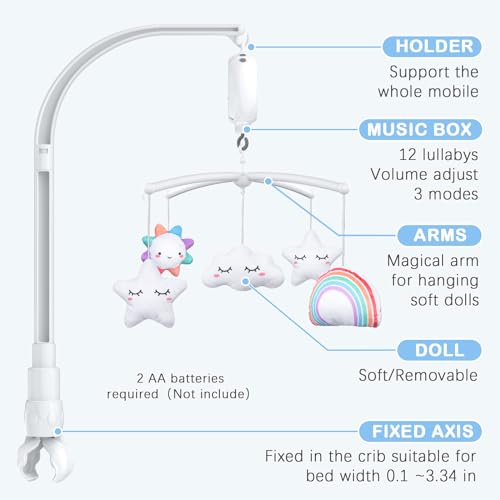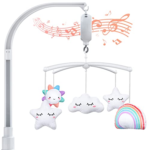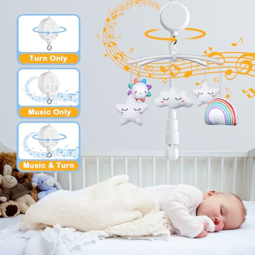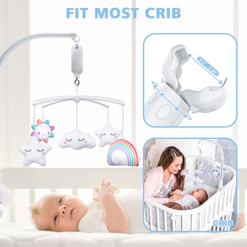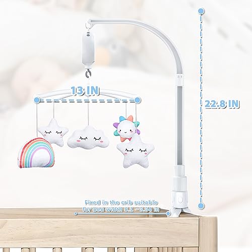 FEISIKE Baby Crib Mobile with 3 Modes Musical Box,Volume Control,12 Lullabies,Nursery Crib Toys for Newborn Ages 0 and Older,23 Inches Baby Mobile Arm and 5 Pcs Hanging Toys