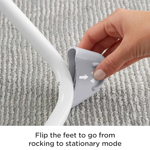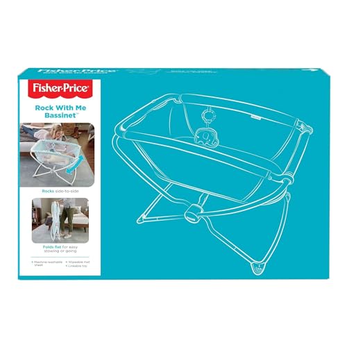 The Fisher-Price Rock With Me Bassinet gives your baby a safe, soothing environment to sleep, at home or while traveling. With a gentle push from you, the bassinet’s flat sleeping surface rocks back and forth, helping to soothe your baby. To keep the bassinet still, simply twist and lock the feet for stationary use. When it’s time to play, you can easily attach the soft, linkable toy for bat-at fun. This portable bassinet has a lightweight frame that easily folds, as well as a machine-washable mattress sheet, making it super convenient for at-home use or for travel. Use only with an infant unable to roll over or pull up on sides, whichever comes first.
