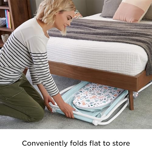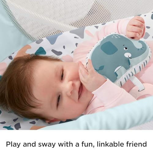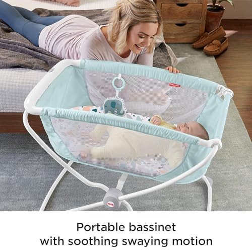 Fisher-Price Baby Crib Rock With Me Bassinet Portable Cradle With Mesh Sides And 1 Toy, Folds For Travel, Pacific Pebble