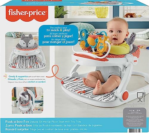 Fisher-Price Baby Portable Chair Premium Sit-Me-Up Floor Seat with Snack Tray and Toy Bar, Plush Seat Pad, Peek-a-Boo Fox (Amazon Exclusive)