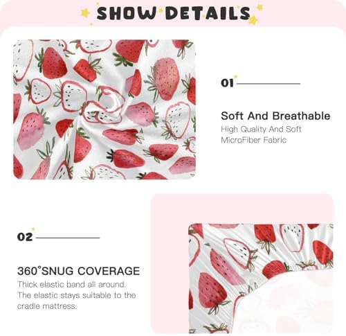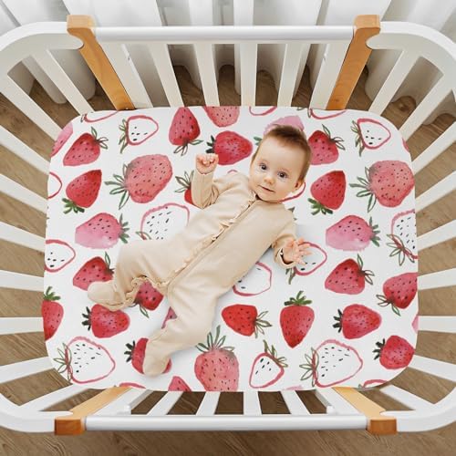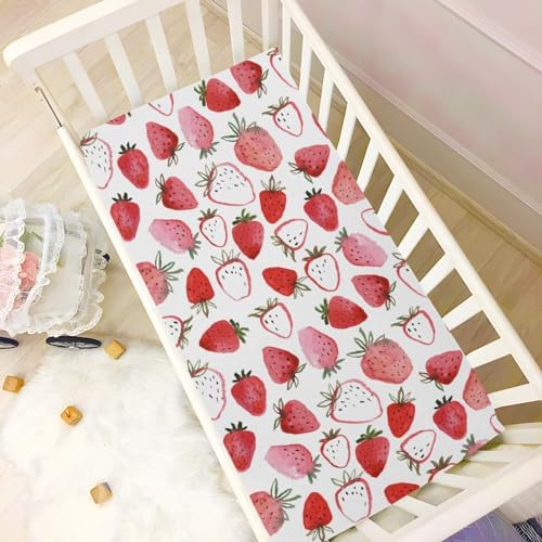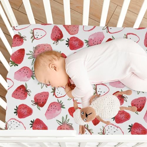 Fitted Crib Sheet Watercolor Strawberries Baby Sheets for Standard Crib Toddler Mattress Cover, Soft Microfiber Breathable Mattress Cover,27″ x 39″ x 5″