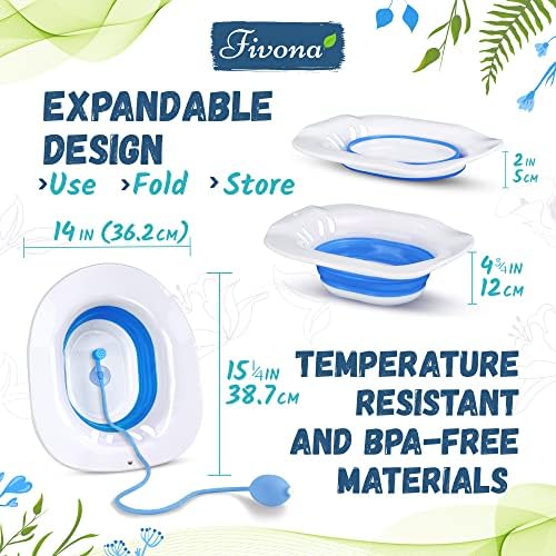 Fivona Sitz Bath for Toilet Seat with Massage Hand Flusher and Storage Bag; Postpartum Care and Hemorrhoid Treatment; BPA Free V Steam Kit; Perfect for Perineal Soak and Portable Bidet