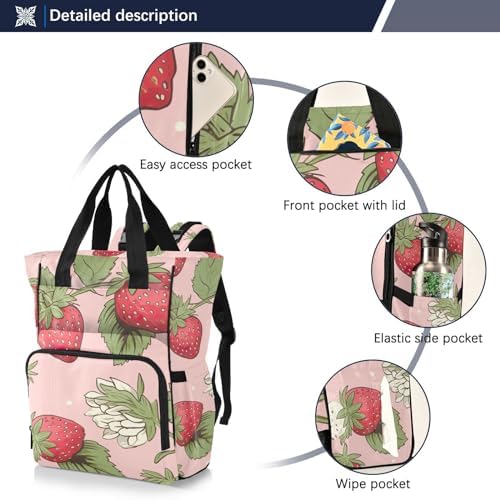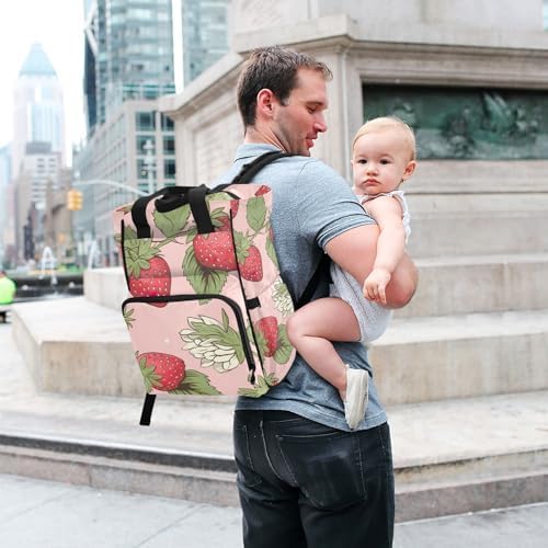 Flowers Strawberries Diaper Bag Backpack for Baby Boys Girls Multifunction Travel Tote with Stroller Straps & Bottle Storage Maternity Travel Bag for Traveling Shopping Hiking Moms Dads