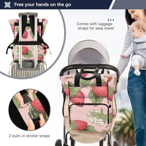 -But that’s not all.The included stroller straps ensure that your hands remain free while securely attaching the bag to your baby’s stroller. No more fumbling with a heavy bag while trying to maneuver the stroller through crow.YH01