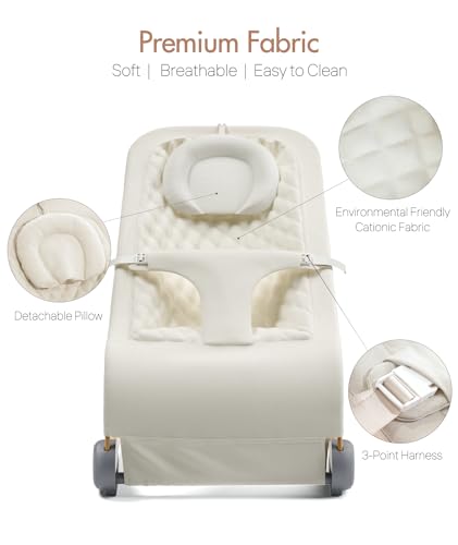 Premium Fabric – Crafted from premium cationic fabric, the baby bouncer seat for infants is soft, breathable, hypoallergenic, and free from harmful substances. It meets ASTM testing standards, guaranteeing safety and gentleness on a baby’s skin.