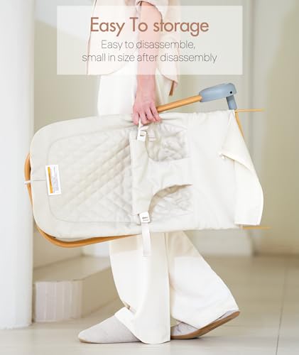 Fodoss Baby Bouncer, Portable Bouncer Seat for Babies, Portable Bedside Bassinet with Wheels, 7 Height Adjustable Baby Bassinet for Infants, Beige