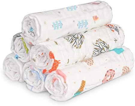 FOOK FISH Muslin Baby Burp Cloths 6 Pack Premium Cotton Burping Rags for Newborn Ultra Soft and Absorbent Unisex Spit Up Rags for Boys and Girls Perfect Baby Registry Gift 20” X 10”