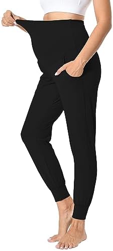 Foucome Women’s Maternity Pants Stretchy Jogger Sweatpants Comfy Casual Pregnancy Workout Lounge Pants with Pockets