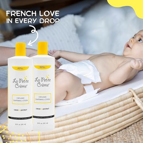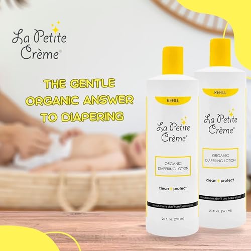 French Premium Diapering Lotion – Diaper Cream Alternative to Baby Wipes – Moisturizer & Skin Cleanser – USDA Certified Organic Ingredients – Baby Essentials (2 Bottles of 20 oz)