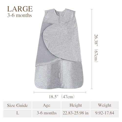 HIGH-QUALITY MATERIALS: Swaddle blanket made with 100% Premium Cotton, soft, breathable, and a little stretchy for babies tender skin. The pure cotton fabric of the swaddle blanket can quickly absorb sweat, but also has high resistance to washing and high warmth. It is the best choice for babies. TOG rating 1-2.5, offering the right comfort, the sleeveless design of the swaddle blanket reduces the risk of overheating and can be layered with warmer sleepwear to resist cooler temperatures