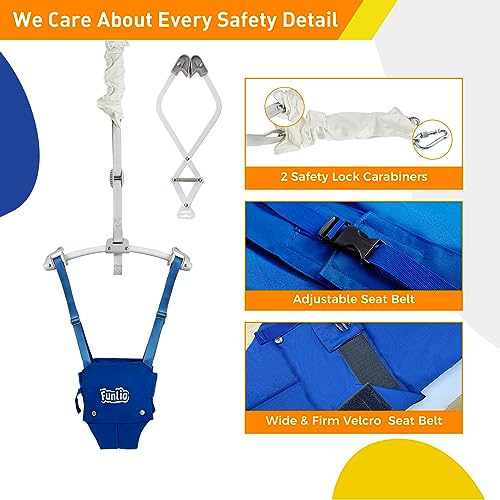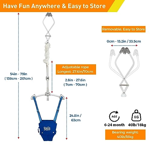 FUNLIO Baby Door Jumper for 6-24 Months (with Door Clamp), Baby Jumper Doorway with Strong Spring & Adjustable Strap, Portable Infant Door Bouncer, Easy to Assemble, Bearing 40 Lbs, CPC & CE Certified