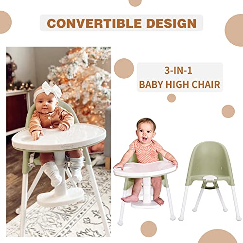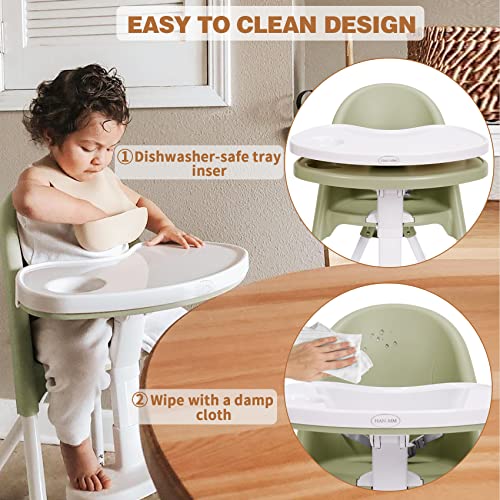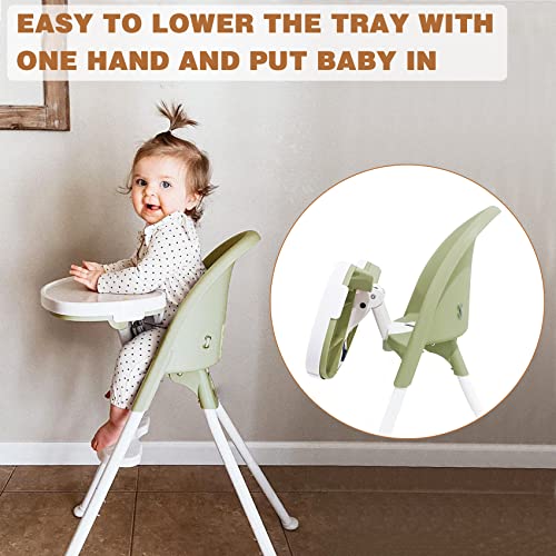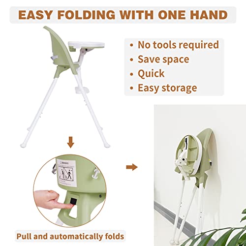 Funny Supply 3-in-1 Cute Folding High Chair, Perfect Modern Space Saving Highchair with Detachable Double Tray, 3-Point Harness, Green