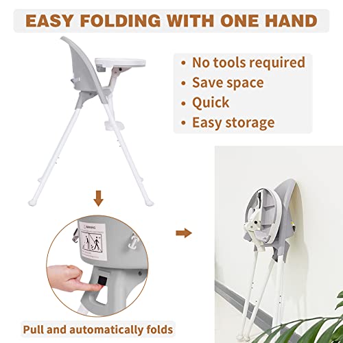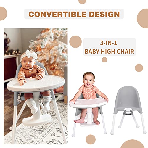 FUNNY SUPPLY 3-in-1 Cute Folding High Chair, Perfect Modern Space Saving Highchair with Detachable Double Tray, 3-Point Harness, Grey