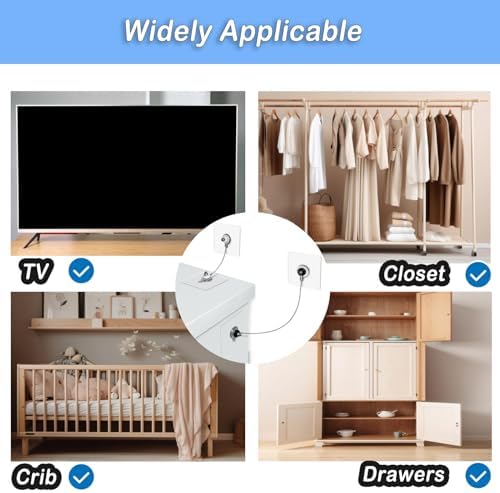 【Scope of Application】The furniture anchor is suitable for flat screen TV, TV cabinets, cupboards, desks, closets, mirror frames, canvases and other lightweight furniture. Does not apply to heavy or extra heavy furniture. For best protection and results, a minimum of 2-4 anchoring wall straps per piece of furniture is required.