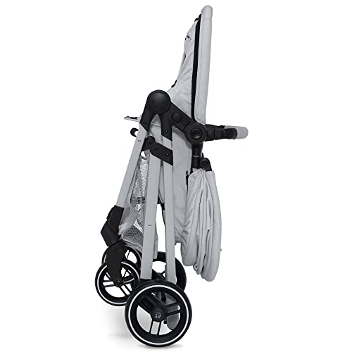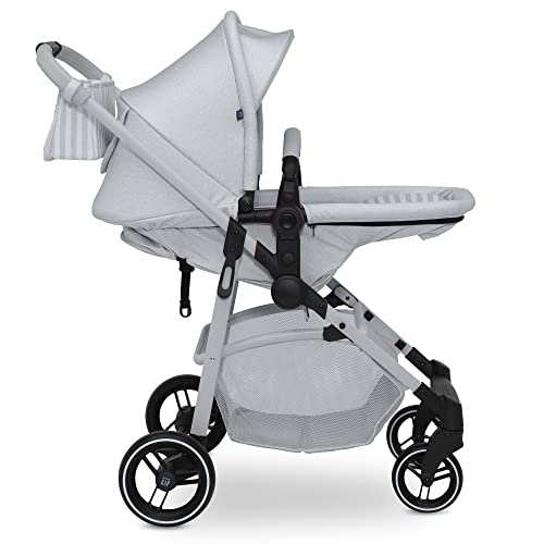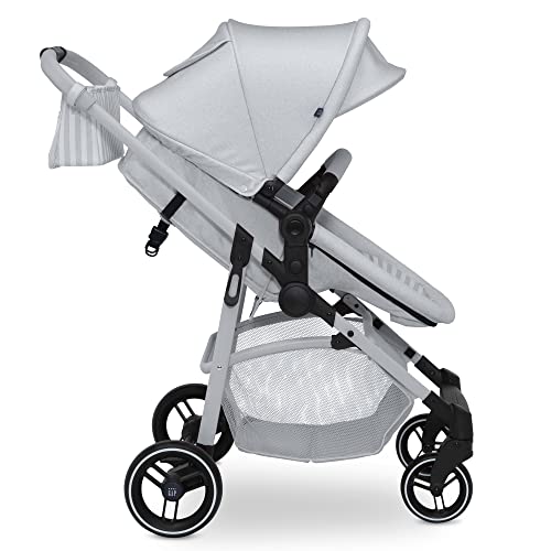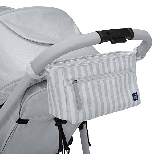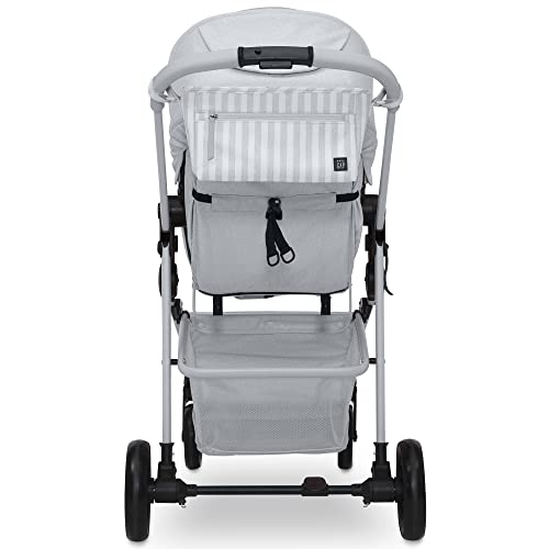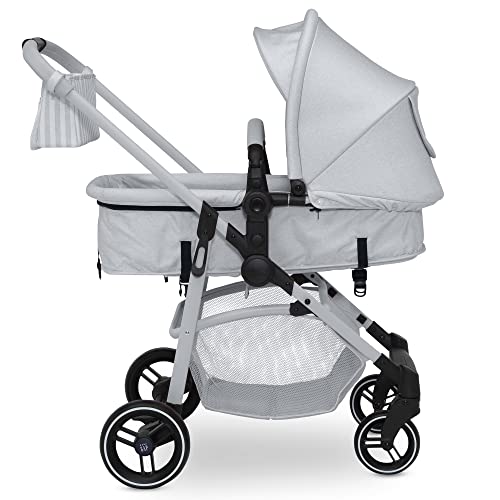 GAP babyGap 2-in-1 Carriage Stroller – Car Seat Compatible – Easy One-Handed Fold – Lightweight Stoller with Oversized Canopy & Reclining Seat – Made with Sustainable Materials, Grey Stripes