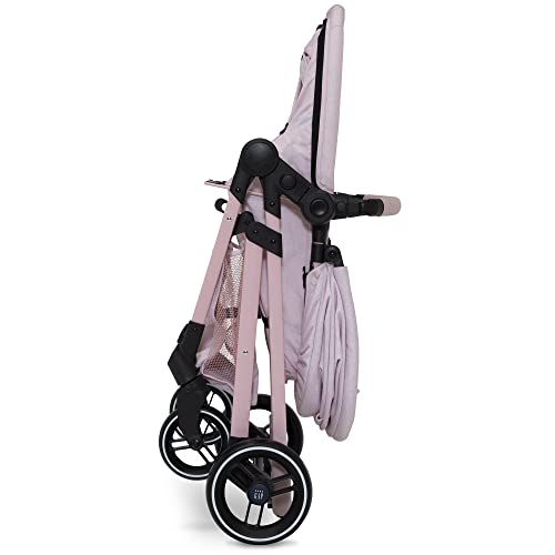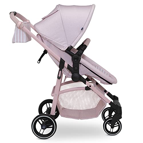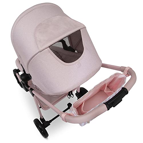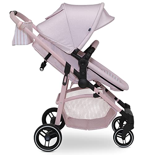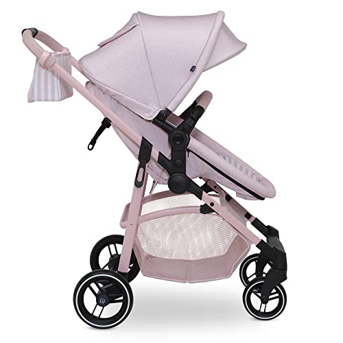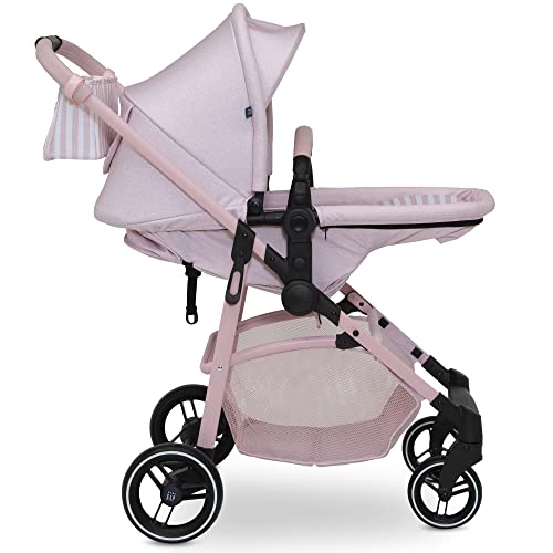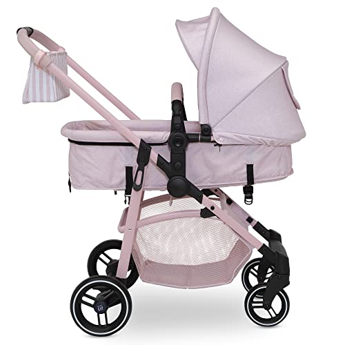 GAP babyGap 2-in-1 Carriage Stroller – Car Seat Compatible – Easy One-Handed Fold – Lightweight Stoller with Oversized Canopy & Reclining Seat – Made with Sustainable Materials, Pink Stripes