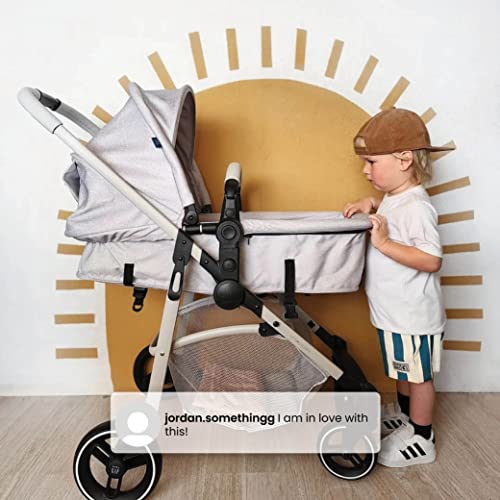The babyGap 2-in-1 Carriage Stroller will carry kids through all ages and stages. This incredibly versatile stroller easily transforms from infant carriage to a reversible toddler stroller that allows baby to face you or the world. Designed for the future in every possible way, it features fabric made from recycled water bottles. Plastic drinking bottles are sorted, cleaned and shredded into flakes that become the yarn the seat fabric is made from. A great choice for your child and the planet, this convertible stroller is outfitted with an adjustable position reclining seat, swing-out leatherette child bar, extendable, soft knit canopy with peek-a-boo window that blocks the sun and tons of storage. The extra-large storage basket and removable parent organizer ensure there’s always enough room for your family’s on-the-go essentials. That’s not all, the babyGap 2-in-1 Carriage Stroller opens and closes with one hand, its easy and compact fold makes traveling or everyday walks stress-free. Uniquely babyGap, the stroller has reversible seat pad and easily recognized babyGap logos and iconic Brannan Bear on the wheels, canopy and safety harness for an elevated look. This stroller is recommended for newborns in carriage mode up to 50 pounds in stroller mode.