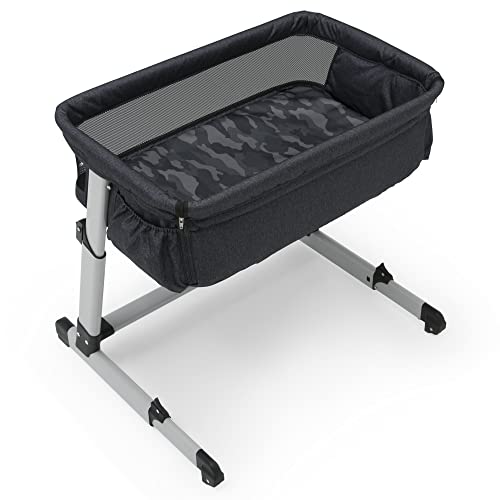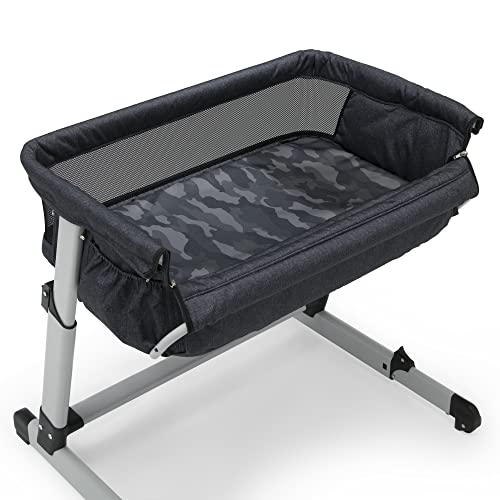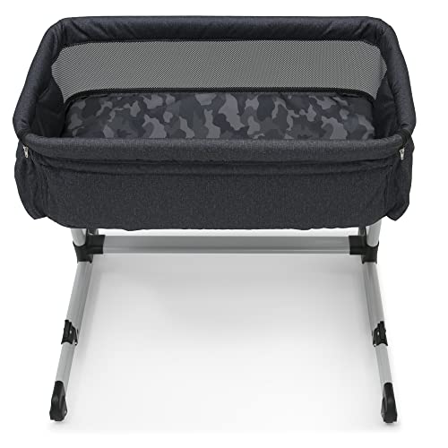 GAP babyGap Whisper Bedside Bassinet Sleeper with Breathable Mesh and Adjustable Heights – Lightweight Portable Crib – Made with Sustainable Materials, Black Camo