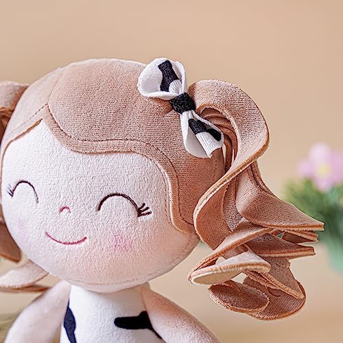 Gloveleya Baby Dolls Soft Snuggly First Baby Girl Gifts Plush Doll with Light Skin & Cow Dress 12inches Animal Series
