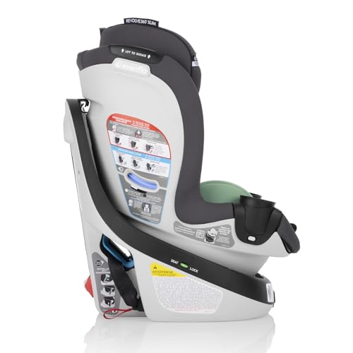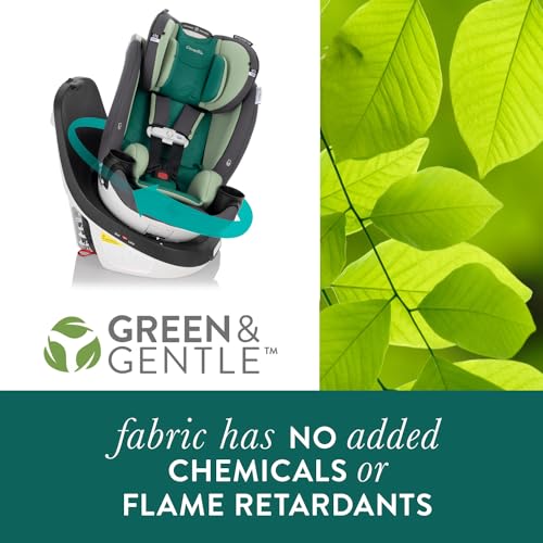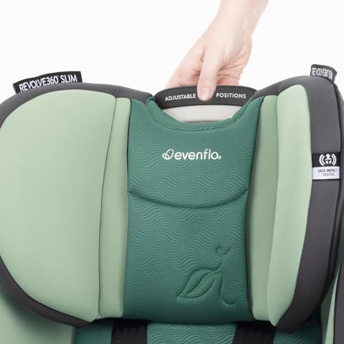 The revolution in car seat innovation adds an evolution for a more positive impact on the planet! The Evenflo® Gold Revolve360™ Slim Rotational 2-In-1 Car Seat with Green & Gentle™ features soft, eco-friendly fabric free of added chemicals and flame retardants, manufactured using 22 recycled plastic bottles. A spin-off of the Revolve360, America’s bestselling rotating car seat, Revolve360 Slim features a slimmed-down exterior to create a 16.7” footprint without sacrificing your child’s seating space or safety. Now you can fit more of what you love into your backseat — more room for passengers and more room for your growing family, while adding sustainability for kids. Another plus is one-hand, 360° rotation, which makes it easy to get your child in and out of the car. The Revolve360 Slim offers two modes: rear-facing (4 lb to 50 lb, for a child measuring from 17 in. to 48 in) and forward-facing (22 lb to 65 lb, for a child measuring 28 in. to 49 in.) This 360° rotating car seat also offers the extended security of rear-facing all the way up to 50 lb. Child safety experts say the longer your child remains rear-facing, the better, and Revolve360 Slim is here to help with peace of mind all the way around. You’re looking for a safe car seat — and the smart car seat choice is a connected car seat. Revolve360 Slim will help put your mind at ease when it comes to child car seat safety, featuring SensorSafe™ to connect you to your little one from the backseat. While your eyes are focused on the road, integrated SensorSafe technology alerts you in real-time to four potentially unsafe conditions from your child’s car seat via your phone: unexpected chest clip unbuckling, temperature too hot or too cold in the car, child unattended in the car, and child seated too long. Install the seat just once for rear-facing and forward-facing modes of use — no need to remove the seat in order to make the switch. Sure360™ Safety Installation System with LockStrong™ and Tether360™, plus a handy bead-level indicator for leveling in seconds, make your one-time installation safe, secure and simple. With the convenience of on-the-go recline, you can adjust the car seat to the perfect angle without having to uninstall or bother your child. This is the crème de la crème of swivel car seats. Offering good looks and ease at every turn, Revolve360 Slim with Green & Gentle cradles your child in Gold-standard comfort, premium finishes and our eco-conscious fabric. Join the sustainability revolution. Go Green — and Gentle!