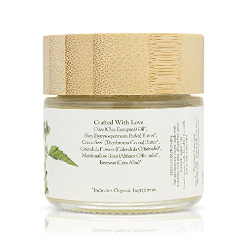 Olive (Olea Europaea) Oil*, Cocoa Seed (Theobroma Cocoa) Butter*, Calendula Flowers (Calendula Officinalis)*, Marshmallow Root (Althaea Officinalis)*, Beeswax (Cera Alba)* – *Indicates Organic Ingredients