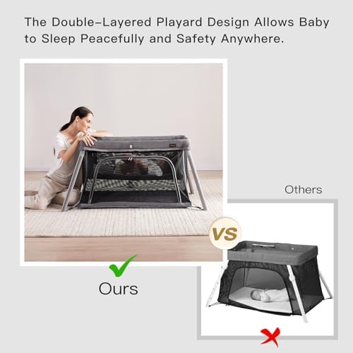 Double layer playard,It’s soft mattress makes the travel crib a comfort place for your baby to sleep at home or away 11