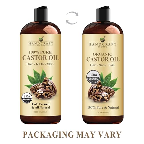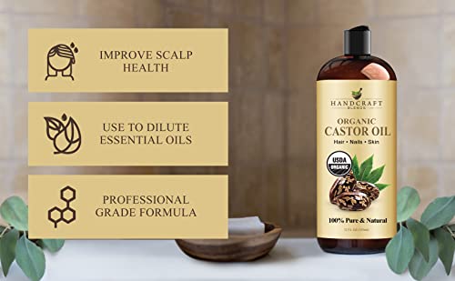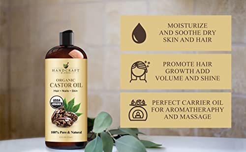 Handcraft Blends Organic Castor Oil in Plastic Bottle – 12 Fl Oz – 100% Pure and Natural – Premium Grade Oil for Hair Growth, Eyelashes and Eyebrows – Carrier Oil – Hair and Body Oil