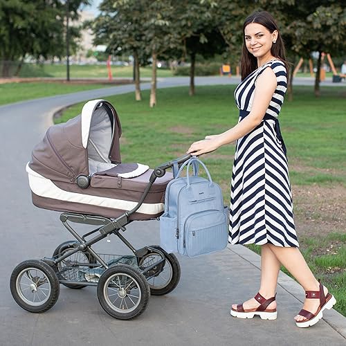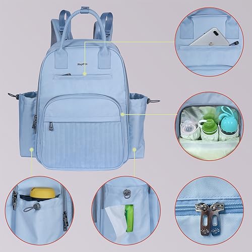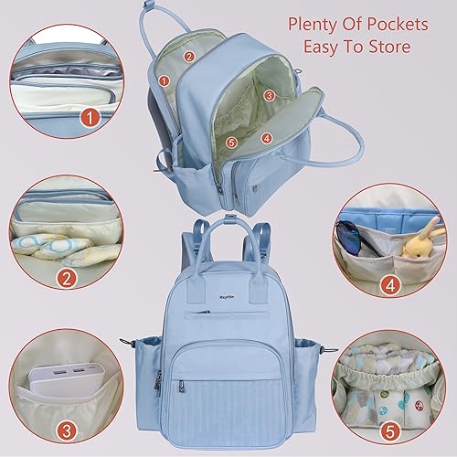 Hap Tim Diaper Bag Backpack, Large Capacity Baby Bag Backpack with Changing Pad,19 Pockets, 2 Stroller Clips, Baby Registry Search, Blue (2252-MLDL)