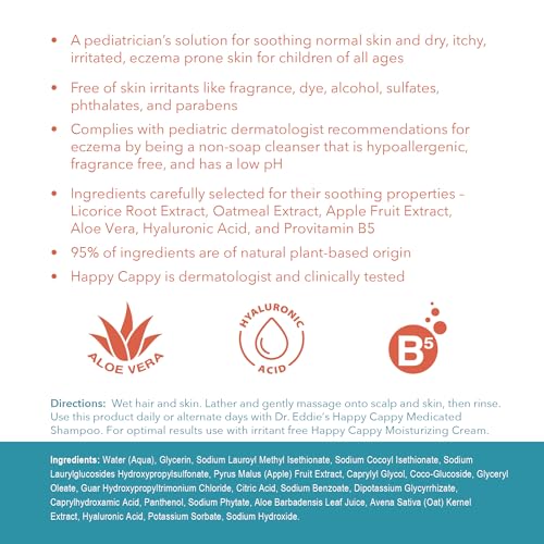 Happy Cappy Dr. Eddie’s Daily Shampoo & Body Wash for Children, Soothes Dry, Itchy, Sensitive, Eczema Prone Skin, Dermatologist Tested, No Fragrance, No Dye, 8 Fl Oz