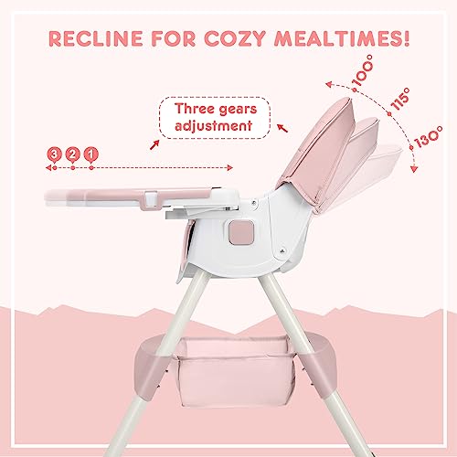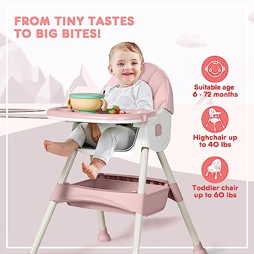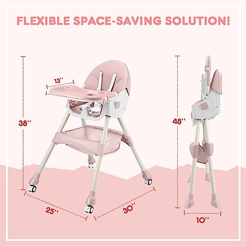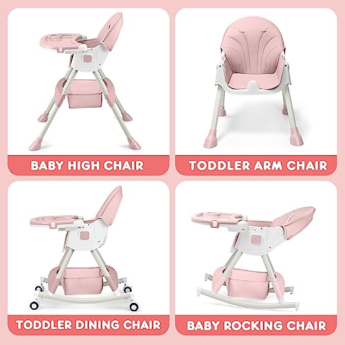 HARPPA Convertible 4-in-1 Baby High Chair for Toddlers with Removable Tray, Wheels & Safety Belt (Pink)