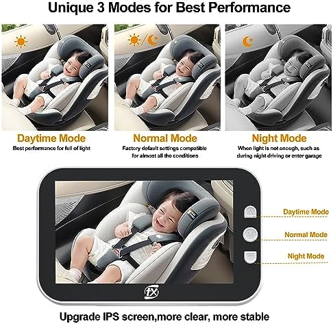 5. 3 modes for Daytime, Normal, Night for your option based on contrast, brightness adjustment. HD 1080P, super clarity, everything makes safer driving for mom instead of turning around or look in a baby mirror.