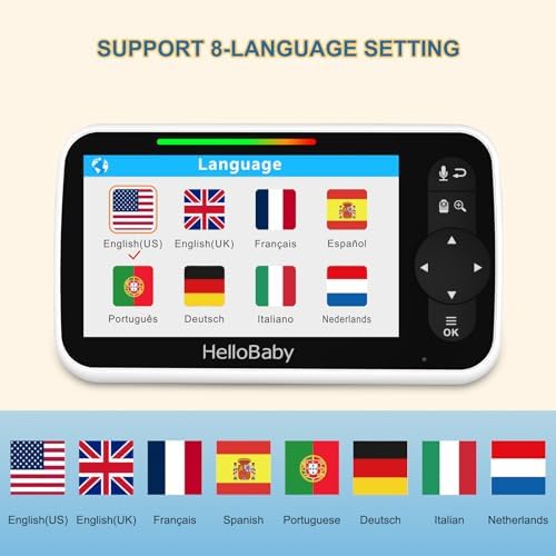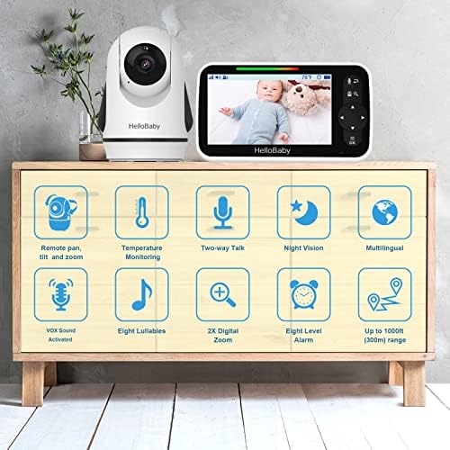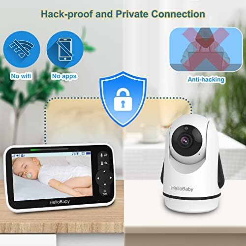 HelloBaby 5 Inch Video Baby Monitor with Camera and Audio, Remote Pan-Tilt-Zoom Camera with Night Vision, 2-Way Talk, Temperature, 8 Lullabies and 1000ft Range Baby Monitor No WiFi Needed